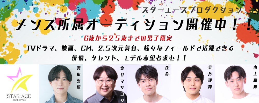 男性アーティストに特化したマネジメントを行う芸スターエースプロダクションでは、メンズ限定所属オーディション開催しております。